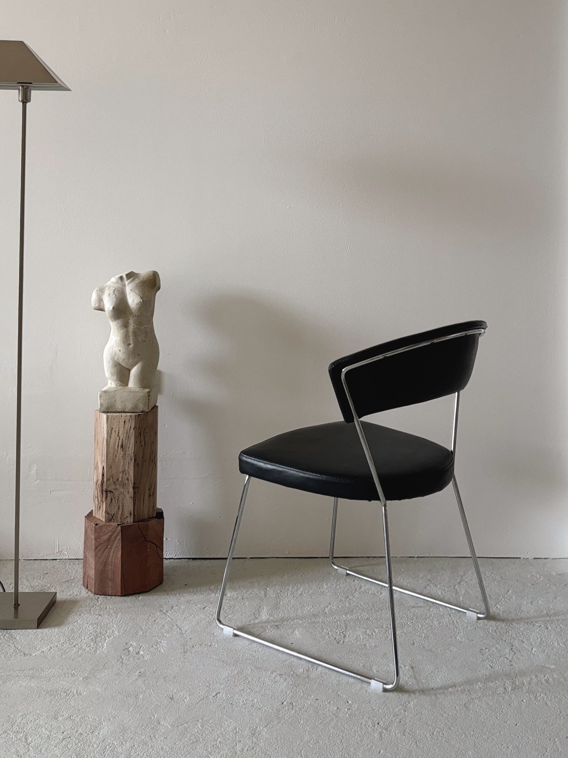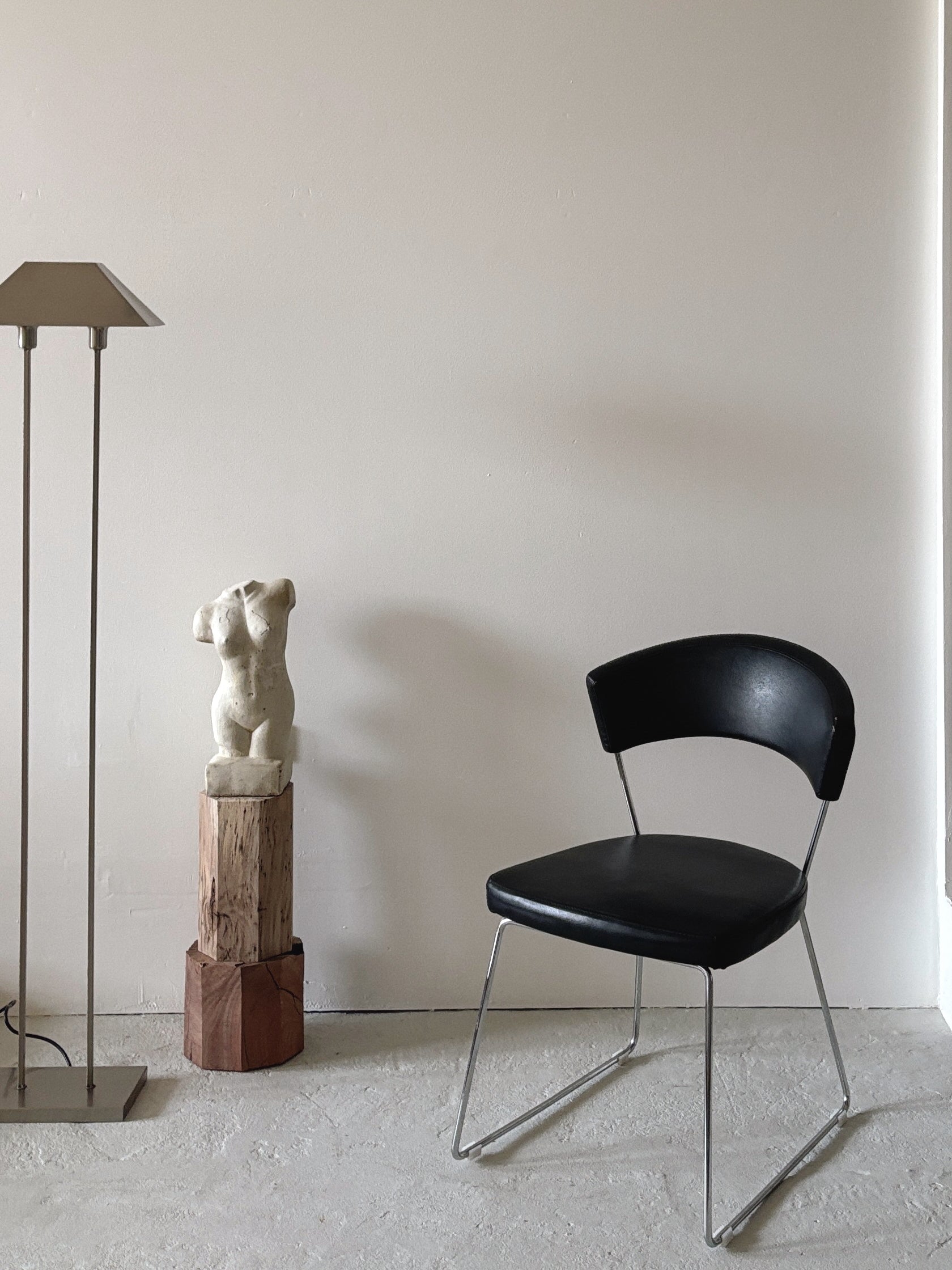 A set of 4 chrome curve back chairs in great pre-loved condition. An absolutely gorgeous clean lined post mod set that we are offering with customised upholstery from a selection of our faves. Super comfy, foam and frame in great condition, lightweight and stackable. Simply select upholstery option you would prefer, and then add to cart. Lead time is 4 weeks from date of purchase. Don't see a colour you're interested in? Let us know! Please see images for examples and mock ups of options.
