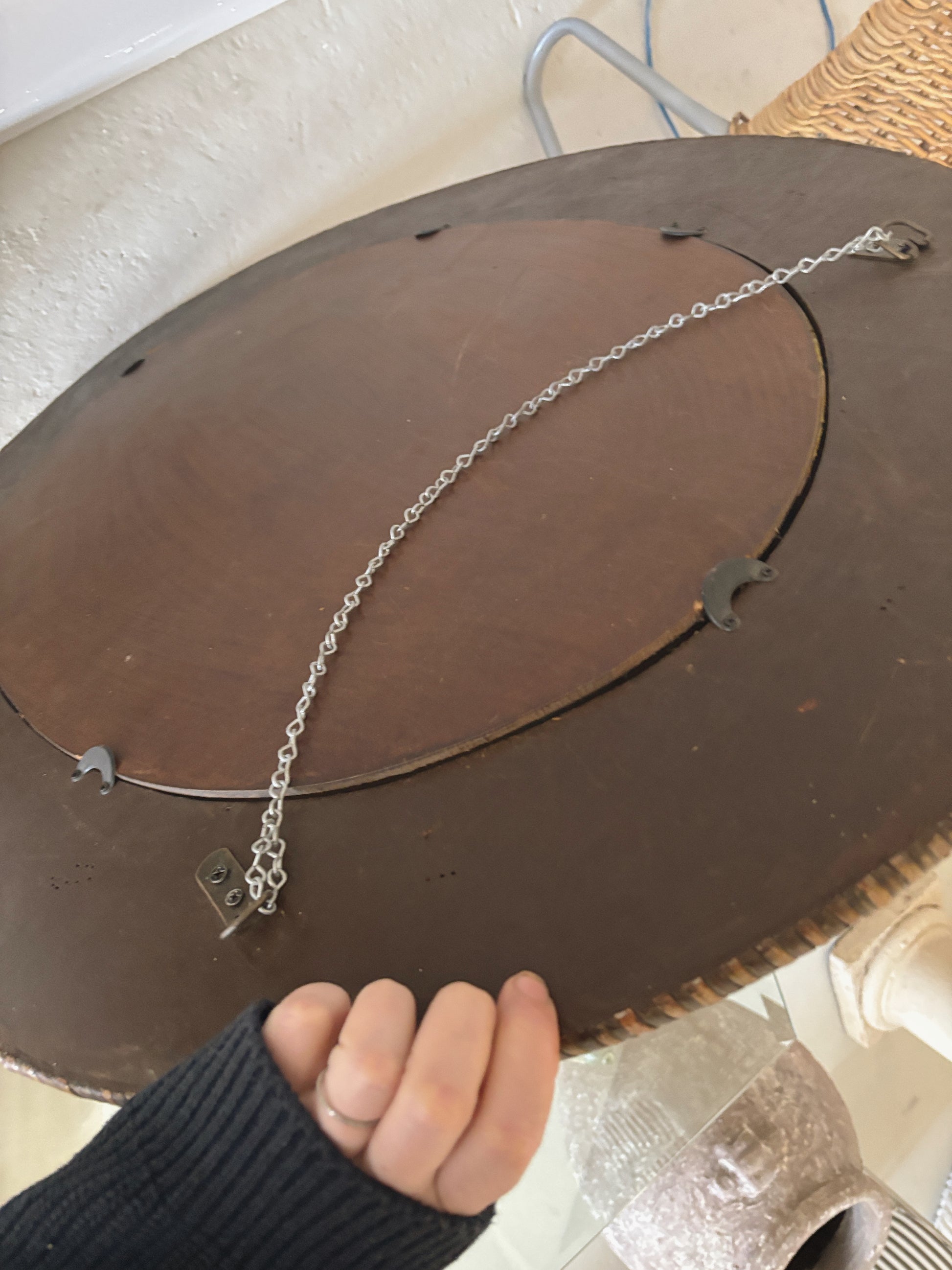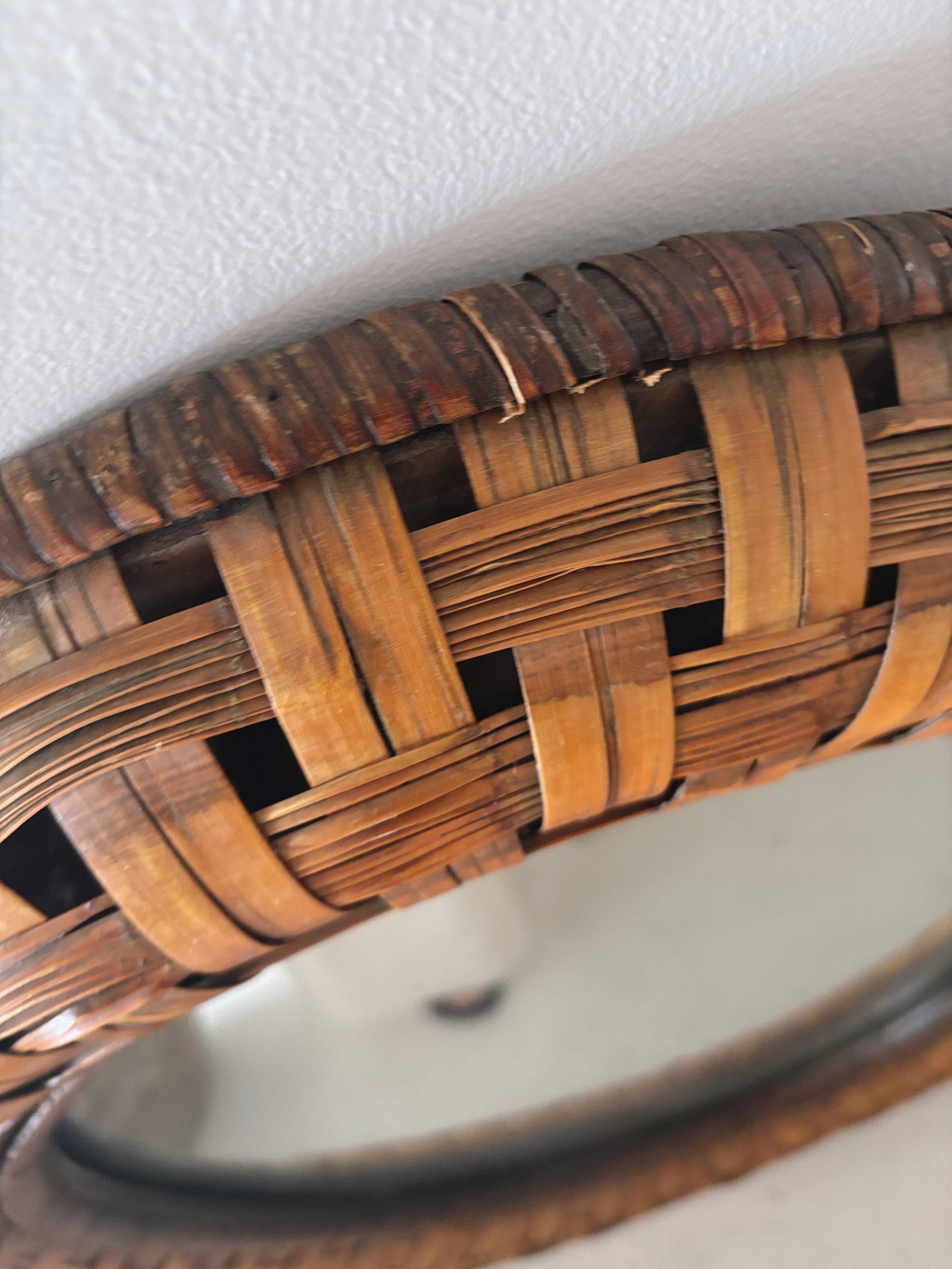 Incredible woven oval mirror in great vintage condition. My obsession with mirrors is growing week on week, and I can't believe how lucky I was to stumble across this piece! An open weave frame surrounds a lovely sized mirror, chain on the back for hanging, a piece with real gravitas! It's divine! Cirac 1980s we think. Please see pics for signs of wear and tear consistent with age.